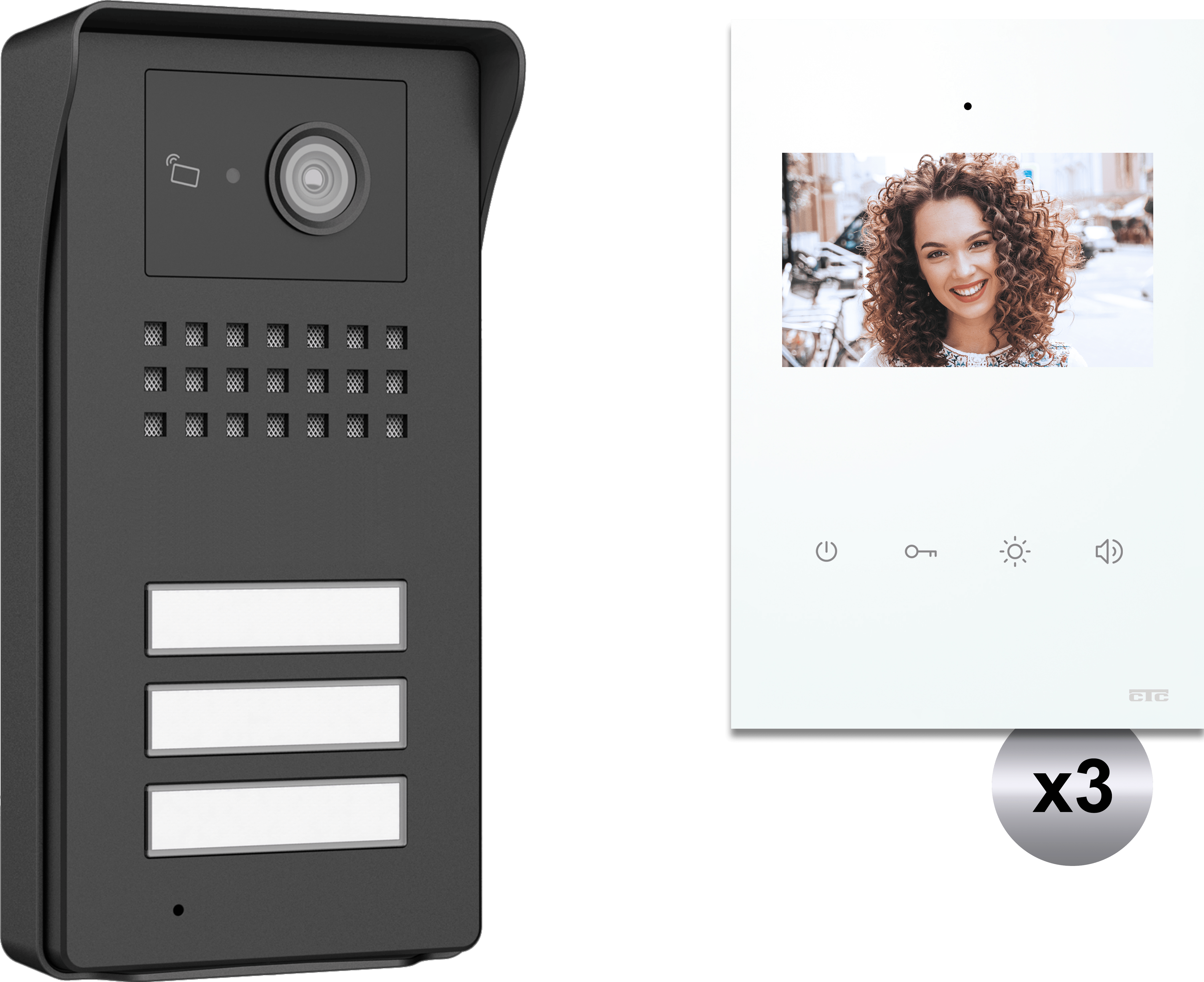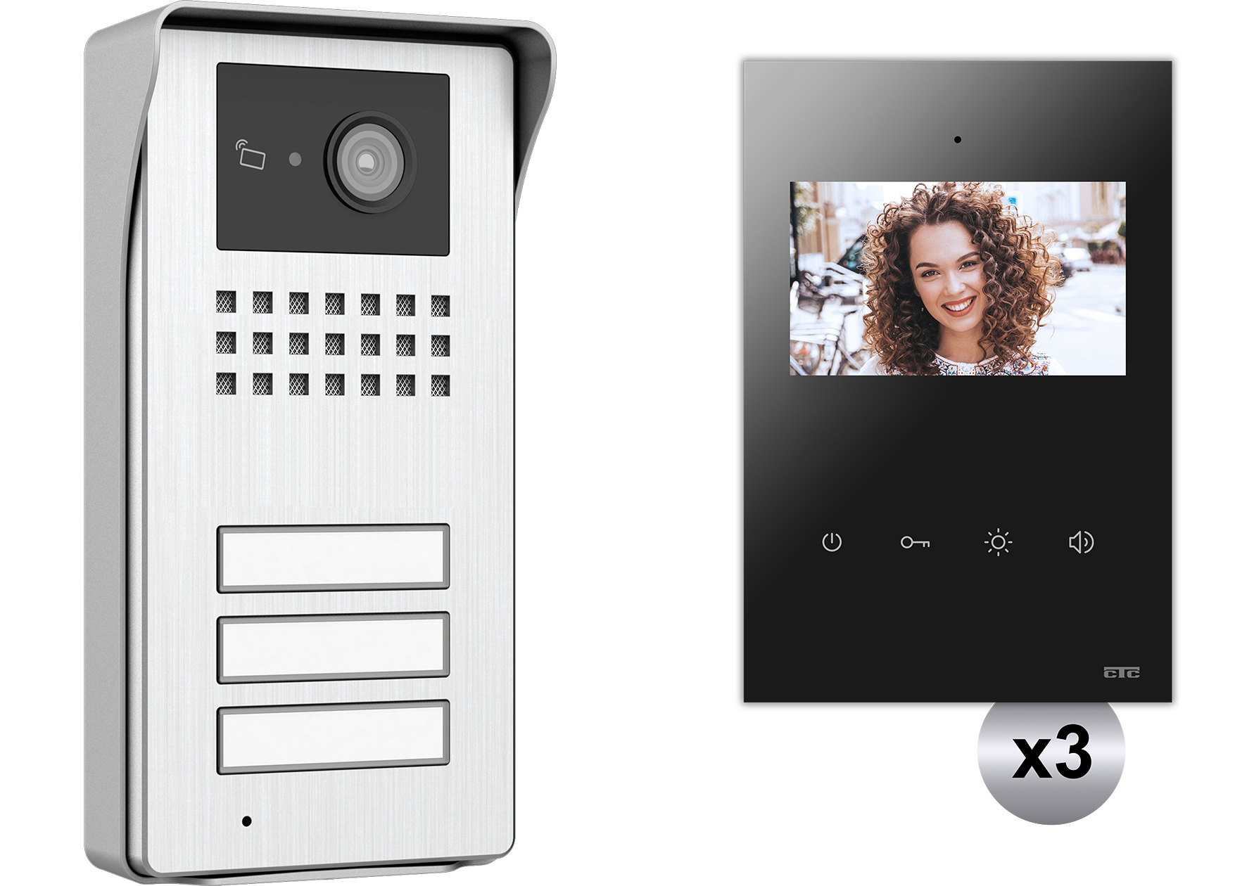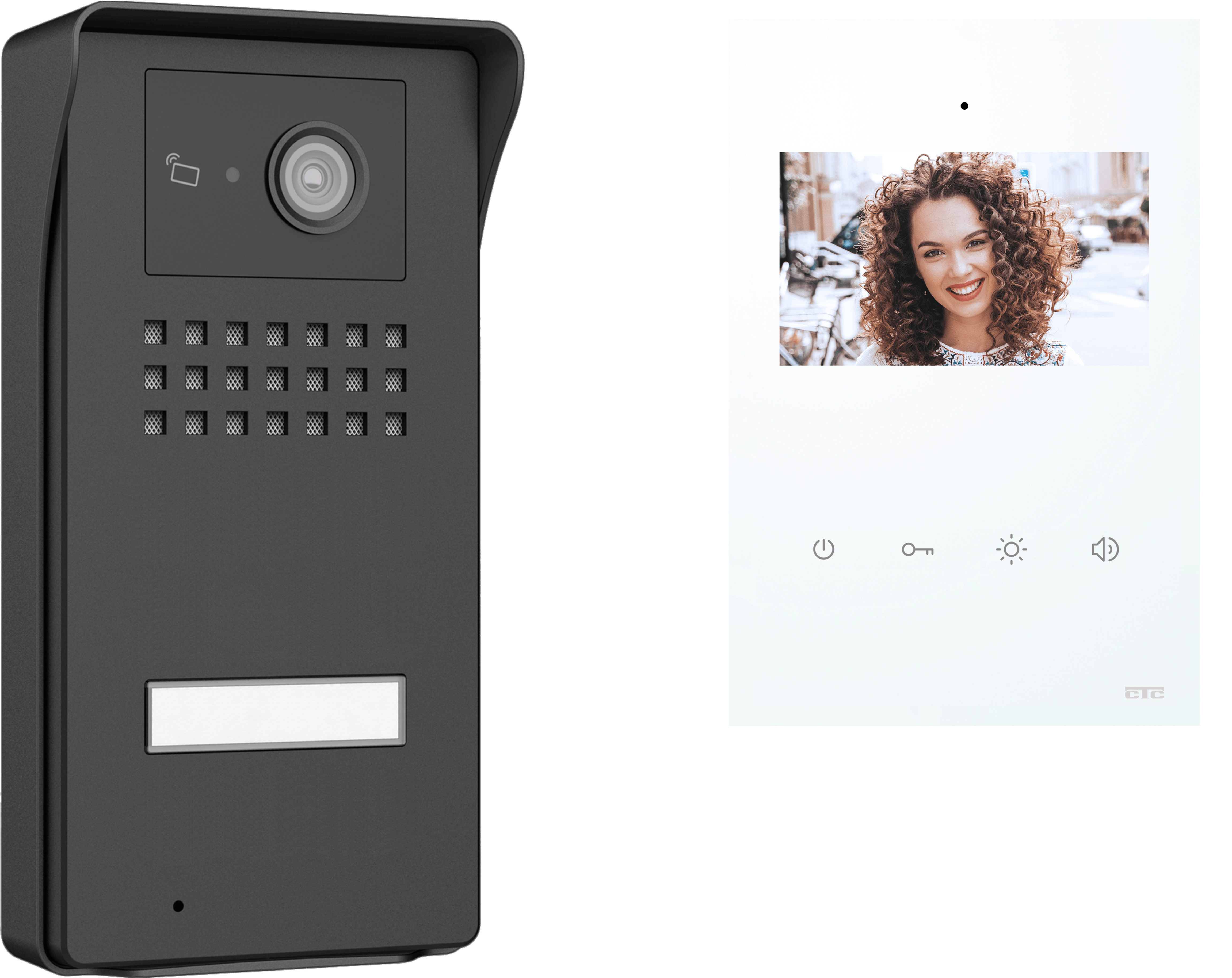 Τα kit θυροτηλεόρασης 2 καλωδίων αποτελούνται από μπουτονιέρα και θυροτηλεοράσεις 4,3", καλύπτοντας τις ανάγκες από 1 (ένα) έως και 4 (τέσσερα) διαμερίσματα.